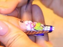 - Aby nehty nebyly příliš krátké, velikost obrázku by neměla být příliš objemná. Kromě toho je nežádoucí, aby všech deset hřebíků bylo zdobeno designem po celé ploše nehtových desek.