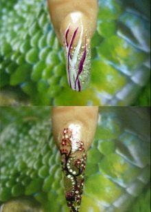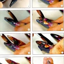 Aby nedošlo k bloudění ve fázích zdobení nehtů, můžete si předem připravit design a podívat se na něj v průběhu práce. To vám umožní sledovat sekvenci vybranou během montáže. K návrhu můžete přidat abstrakci, případně můžete malovat kontury tenkým štětcem. Poté, co je celý dekor uspořádán v požadovaném pořadí, zůstane fixován modelovacím produktem s průhlednou texturou.