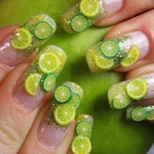 Polymerová hlína je jedním z vyhledávaných materiálů použitých pro vytvoření aqua designu. Častěji jsou z tohoto materiálu vytvářeny letní dekorace, což je částečně způsobeno mnohobarevnými šťavnatými odstíny jílu. Vzor je tvořen řezáním jílu speciální čepelí. Zároveň je sbírají z nejmenších prvků. Chcete-li tento dekor opravit, je nutné hřebíky zakrýt naneseným materiálem, nikoli jednou, ale několika vrstvami průhledného gelu nebo akrylu. Protože Fimo je malý, mohou porazit techniky, jako je francouzská manikúra i reverzní bunda.