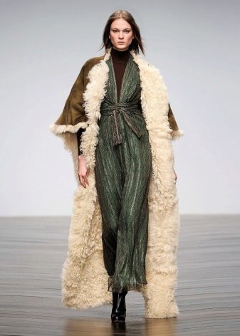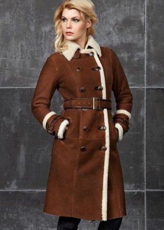 - Ovčí kožich, který je na rozdíl od klasické variace zbaven zipu: jeho roli hraje pás pro vůni (takové modely se stanou skutečným nálezem pro dámy, které chtějí vypadat stylově a efektivně během těhotenství);
