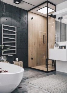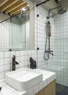 - Loft Dobře se hodí k dekoraci koupelny v soukromém domě, protože vyžaduje hodně volného místa. Chcete-li navrhnout sprchu v podkroví stylu, potřebujete nástěnné dekorace z červených nebo bílých cihel. Dveře musí být instalovány kov nebo sklo. V případě podlah bude tou správnou volbou texturovaná dlažba. A ještě jedna věc by neměla být zapomenuta - veškerá komunikace musí zůstat otevřená.