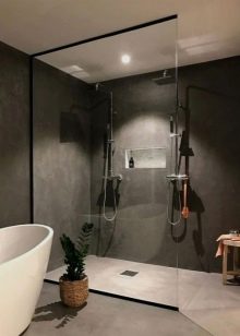 Mnoho designérů doporučuje instalovat místo standardních sprchových kabin bez sprchy, aby byl interiér koupelny různorodý. Díky tomuto řešení je možné nejen plně využít celý prostor v místnosti, ale také maximalizovat představivost v designu. Takto vypadají krásné projekty.