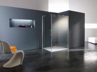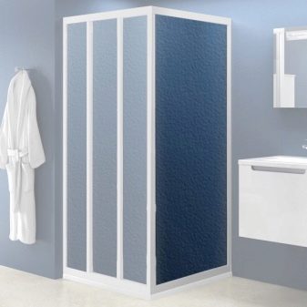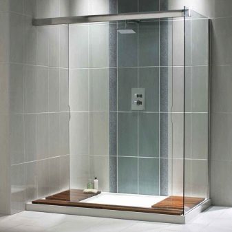 Kromě toho se liší radiální, půlkruhové, pravoúhlé a úhlové struktury bez kabiny. Vzhledem k nedostatku palety vydrží takové sprchy ve srovnání se standardními modely mnohem déle.
