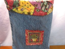 - Pod pásem džíny (horní část sáčku) vytvořte štěrbiny pro pera. Vložte rukojeti na přední stranu. Šít. Taška je připravena! Pokud chcete, můžete tento model komplikovat přidáním měkké prošívané podšívky.