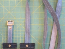 - Vezměte popruh a odřízněte jej následujícím způsobem: vyrobte fragment s přezkou 10 cm dlouhý, fragment s otvory 40 cm dlouhými a dvěma dalšími řezy o 3-4 cm každý.
