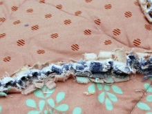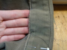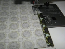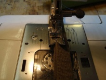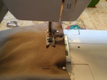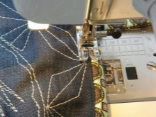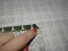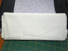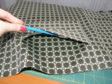 - Složte horní okraj krytu dovnitř a přišijte, ale ne zcela - krajka bude vložena do levého slotu.
