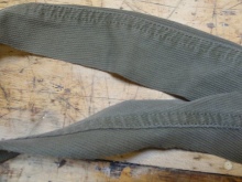 - Odřízněte podélné boční švy nohou. Tyto kusy budou sloužit jako kliky pro budoucí tašku.
