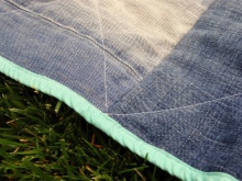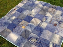 Ze starých nudných džíny lze vytvořit nejen kabelky. Velmi módní a stylový patchwork deka může být také šita z zbytečných denimových kalhot.