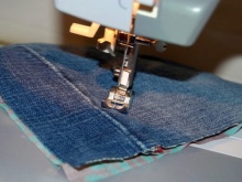 Složte jeansové střihy svými tvářemi k sobě a přišijte po stranách na psacím stroji.