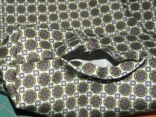 Přišijte spodní část podšívky stejným způsobem, jako bylo spodní část šité pro přední část sáčku. Nyní zbývá pouze vyplnit obložení dovnitř a zajistit ho tam stehy v rozích.