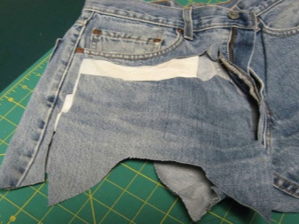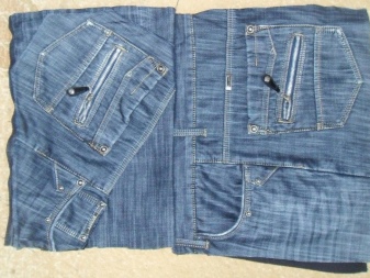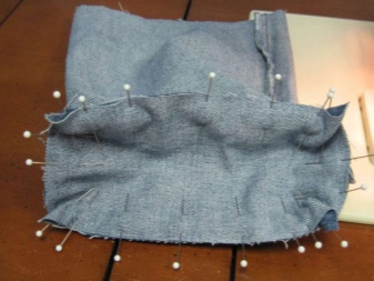 - Chcete-li ukázat džíny, položit na stůl, odříznout tak, aby se ukázala nezbytná hloubka sáčku. Našijte spodní část na psacím stroji.
