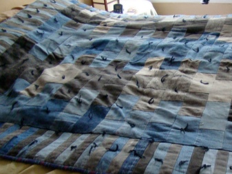 Jeden pár samozřejmě nestačí. Budete muset sbírat co nejvíce kopií starých džíny, jak je to možné, budete také potřebovat další tkaninu a syntetický zimníizér pro obložení. Podrobné pokyny k vytvoření módní kostkované fotografie naleznete na fotografii.