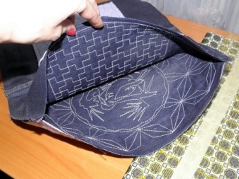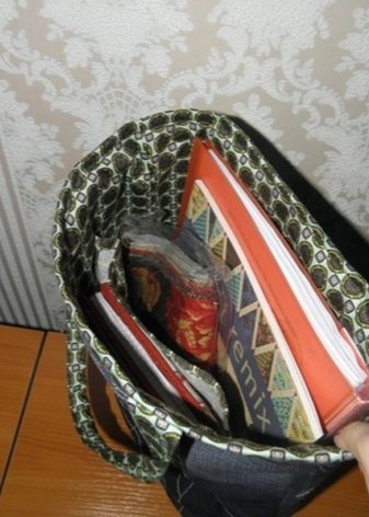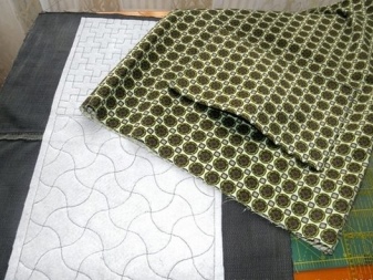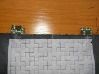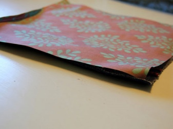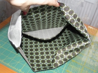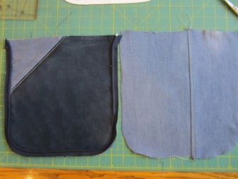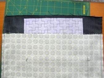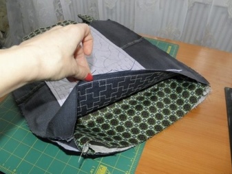 Dále musíte udělat podšívku. Z toho by měly být vyříznuty 2 pravoúhlé kusy 36x45 cm ze střihů druhé tkaniny a k jedné z těchto částí musí být přišita kapsa. Chcete-li to provést, vystřihněte obdélník libovolné velikosti ze stejné tkaniny (v závislosti na vaší touze). Horní okraj kapsy musí být dvakrát složen a prošitý přímkou. Zbývající hrany jsou jednoduše vyhlazeny dovnitř a připevněny.
