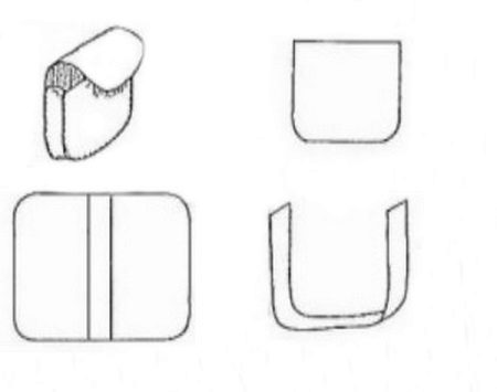 Spodní část sáčku je následující: uprostřed sáčku je složen na polovinu, šířka dna je stanovena libovolně na základě vaší žádosti. Dále je sešitá, jak je uvedeno na fotografii. Je zbytečné řezat, kontrolovat symetrii.