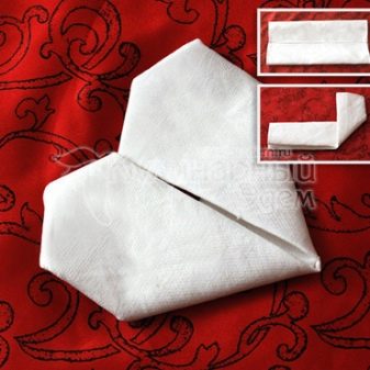 - Dále byste měli znovu složit na půl ubrousku. Je nutné ohýbat jednu vrstvu materiálu tak, že v důsledku toho je roh umístěn vlevo dole.