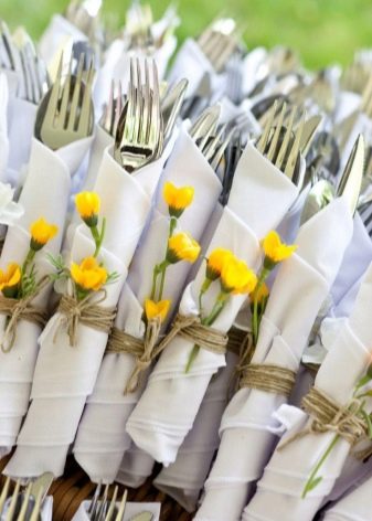 Dalším způsobem, jak vytvořit obálku sloužící textilie, která nejen vypadá neobvykle a atraktivně, ale je také ideální pro zdobení banketu pod širým nebem. Chcete-li to provést, musíte provést tyto kroky:
