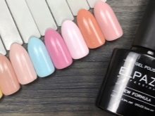 Vzorec gelového laku Elpaza má husté a stabilní pigmenty, díky nimž mají odstíny laku vysokou saturaci, což vám umožňuje dosáhnout manikúry v jedné vrstvě aplikace. Pohodlně tvarovaný kartáč rozděluje lak rovnoměrně na povrch nehtové desky, nešíří se a „nestříká“. Polymerace v UV nebo LED lampě je 2 minuty. Důvodem je skutečnost, že textura laku je velmi hustá a hustá, v důsledku čehož se prodlužuje doba schnutí.