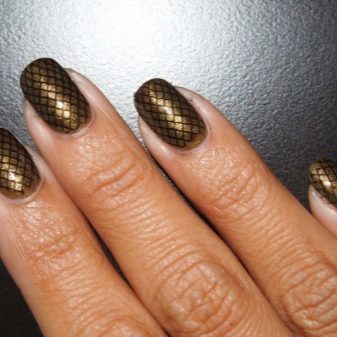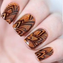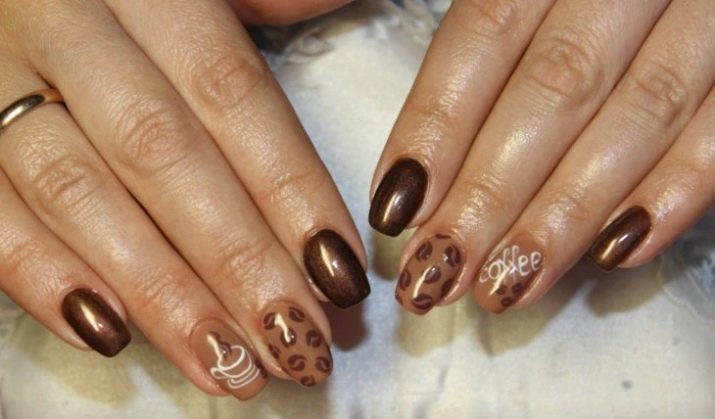 Nejčastěji dívky zdobí nehty kresbami.V hnědých tónech jsou velmi vhodné texturované obrázky hadí kůže, kůry dřeva nebo přírodního kamene. Spojení hnědého s kávou a čokoládou vedlo k popularitě gastronomických variací obrazu. Modré, žluté a světle zelené prvky geometrických ornamentů dokonale zdůrazňují barvu kávy a hořčičného medu.