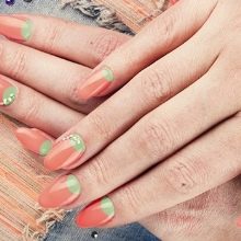 - Můžete si vizuálně upravit tvar nehtů; proto jsou mrkvové a terakotové tóny vhodnější pro krátké nehty čtvercového nebo oválného tvaru, broskev, oranžový odstín harmonicky vypadá na dlouhých nehtech mandlového nebo čtvercového tvaru;