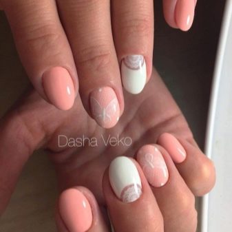 Moderní nehtové umění nabízí celou řadu kompozic s barevnou hrou i s dalšími prvky. Při výběru manikúry v takové světlé barvě je třeba pamatovat na její kombinaci s jinými odstíny.