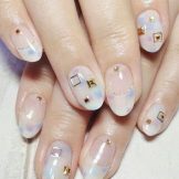 Mléčné průsvitné gelové laky se v této sezóně staly velmi populární. Vypadají skvěle jako nezávislý povlak a jako základ pro všechny druhy vzorů s třpytkami, monogramy a dalšími ozdobnými prvky.