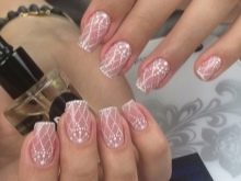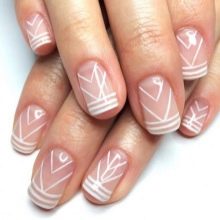 Design se vzory vyrobenými z bílých barev na průsvitném podkladu, ideální pro svatební manikúru.