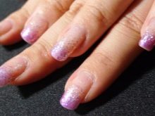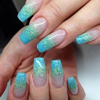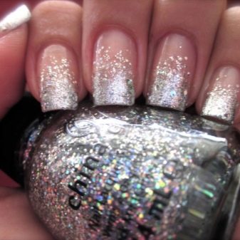 Nail gradient design s flitry je v současné době velmi populární. Technikou jeho implementace je kombinace konvenčního průsvitného gelu a gelu se třpytkami. Třpytky se aktivně aplikují na okraj nehtové desky a přecházejí úplně na průhledný gel na dno nehtu. Velmi oblíbené jsou odstíny zlata, stříbra, modré a fialové barvy.
