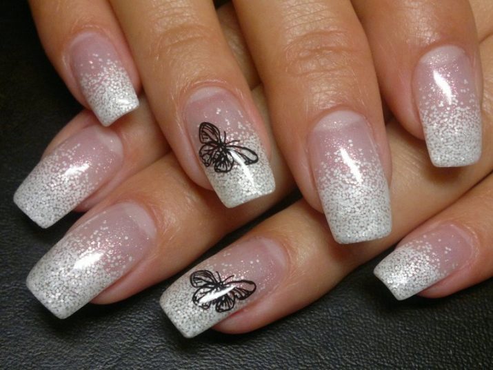 Při doplňování designu hřebů všemi druhy prvků je důležité nepřetěžovat obraz. Elegantní, zdrženlivý a zároveň třpytky aplikované na průhledném podkladu vypadají velkolepě.