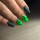 Zelená barva je mnohostranná, což ovlivňuje sytost odstínů. Ať už je více neutrální barvy v zelené, hnědé nebo modré, každá bude vypadat zvláštním způsobem. Mezi množstvím různých možností moderní manikúry jsou požadovány tyto barvy: