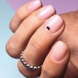 Neutrální základní pokrytí v tělových tónech bude sloužit jako vynikající pozadí pro jakýkoli design. Pro milovníky stylu minimalismu stačí vybrat několik hřebíků s tečkami a originálními geometrickými liniemi.