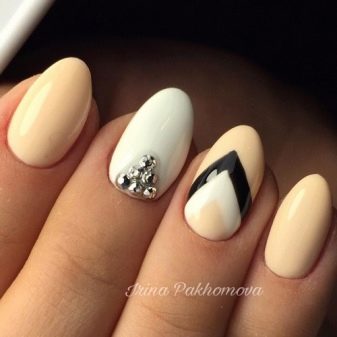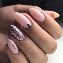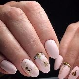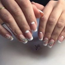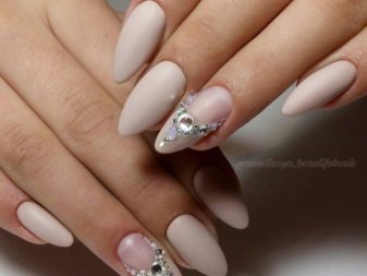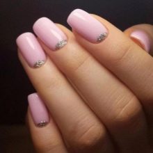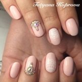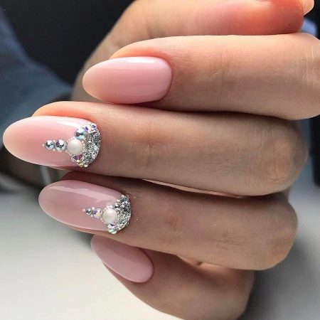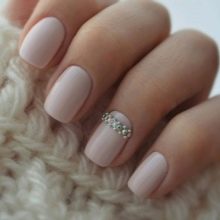 Design s použitím štrasových kompozic není vždy zdánlivý. Laconic a jemná manikúra s malými akcenty ve formě kamenů je vhodná nejen na večírku.
