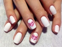 Bílé a růžové hlavní pozadí je skvělá příležitost zdůraznit propracovanost květinového vzoru. Takový design je vhodný pro denní i večerní vzhled.
