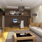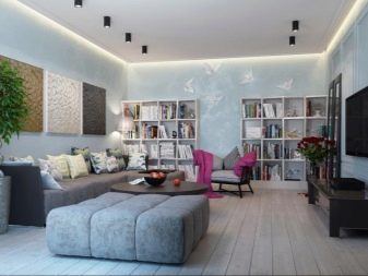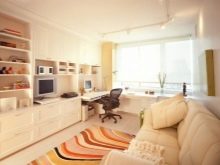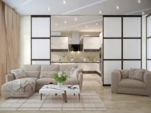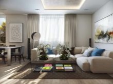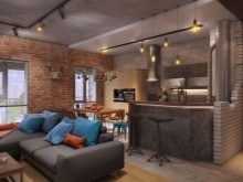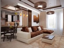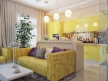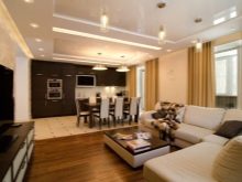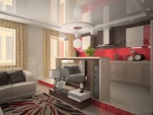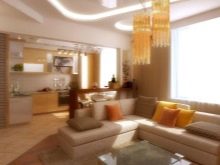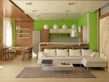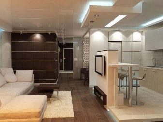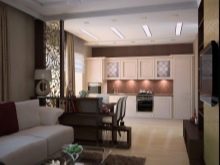 - Obývací pokoj v kuchyni. Tato možnost získává stále větší oblibu. Má mnoho výhod. Místnost vypadá jako jeden celek, prostor se vizuálně zvětšuje, protože zde nejsou žádné stěny a příčky. Další výhodou je schopnost trávit čas společně s celou rodinou. Hosteska si může uvařit lahodnou večeři, hlava rodiny může pracovat u počítače nebo sledovat televizi a děti si mohou hrát nebo si užívat své oblíbené karikatury.