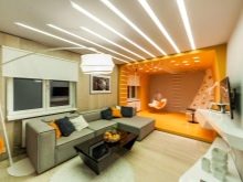 - Osvětlení Návrháři věnují velkou pozornost světlu. Ale pro většinu je práce s osvětlením omezena na výběr jednoho hlavního lustru. Promyšlený scénář osvětlení pomůže zvýšit atraktivitu a výraznost interiéru. S tím nejen zvýrazníte jednotlivé zóny, ale také zajistíte pohodlnou existenci.