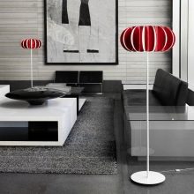 - Stojací lampy. Mohou sloužit nejen jako dodatečný zdroj světla, ale také jako vnitřní předmět. Trh nabízí širokou škálu modelů, které zdůrazňují a zdobí váš interiér.