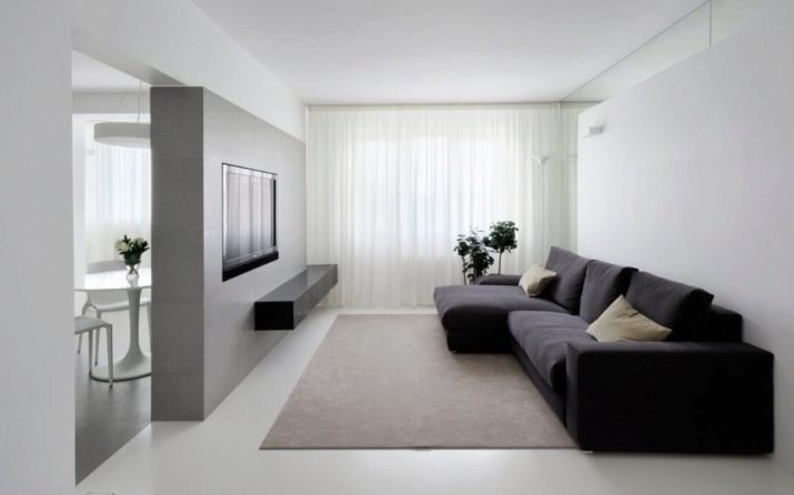 Absence dekorativních prvků a skrytých modulů jsou charakteristické znaky minimalismu. Zůstane funkční a pohodlný, takový obývací pokoj bude naplněn vzduchem. Díky zajímavým designovým řešením se zdá obývací pokoj větší a prostornější.