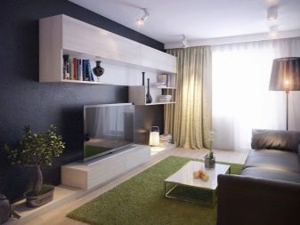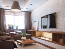 Na základě dostupné oblasti se připravuje projekt. Otázka je vyřešena, kterou lze bezpečně opustit. Například diapozitivy, sekce, masivní skříňky pod televizorem jsou často zbytečné. Často udržují uvnitř toho, co vlastníci nikdy nevyužívají. Protože mediální zónu lze zjednodušit některým zajímavějším řešením. Například pro zvýraznění zdi jinými tapetami, laminát, imitace cihlové zdi a možná nečekaný panel na celé zdi.