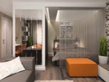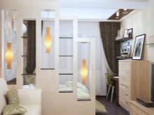 - Příčky. Mohou to být sádrokartonové konstrukce různých velikostí, šířek, s výklenky nebo bez nich. Neexistují neméně vzácné a skleněné přepážky, které mohou být nominální (doslova 1 m široké) a mohou být blízko skutečné zdi, tj. Rozdělit místnost na dvě části, jako by to udělala vnitřní zeď.