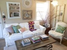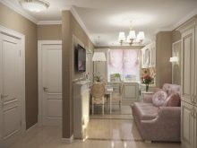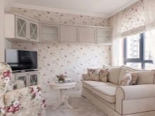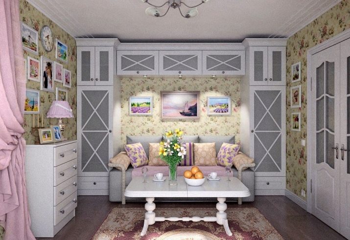 - Malý sál v provensálském stylu je velmi romantický, lehký a elegantní. Nábytek s vysokou funkčností (mnoho úložných míst) vypadá skvěle. Hlavní věcí v takovém obývacím pokoji není přehánění dekorem.