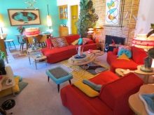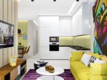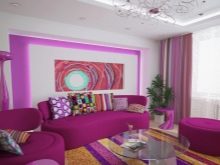 - Pop-art. Nemůžeme zmínit styl, který bude vyhovovat kreativním lidem, kteří se nudí ve stejném typu interiérů. Využívá kontrastní, zářivé odstíny, v něm jsou možné neonové inkluze. Hlavní sémantické zatížení v tomto stylu jsou stěny.