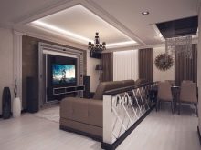 Design v klasickém stylu nepřestává být poptáván. Ale základní požadavek na takovou opravu je neměnný: obývací pokoj v klasickém stylu je drahý přírodní materiál. Je nemožné si představit situaci, kdy by tapeta v klasicky navrženém obývacím pokoji po několika letech ztratila svůj lesk a musela být vyměněna nebo že nábytek ztratil svůj reprezentativní vzhled. Kromě toho, design haly v klasickém stylu vyžaduje prostor a malé záběry budou překážkou.