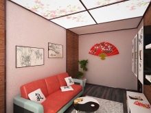 - Japonský styl. Vyznačuje se uklidňujícím a výstižným designem s optimalizovaným prostředím a také tendencí k obnově přírodních podmínek. Používají se pouze přírodní materiály, dekorace lehké stěny, nábytek v omezeném množství. Pokud nechcete „načíst“ obývací pokoj s mnoha funkcemi, stojí za zvážení japonský styl.