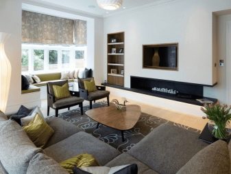 - Art Deco. Něco mezi funkcionalismem a moderním. Styl podléhá přísným vzorům, změkčeným etnickými motivy, geometrickými a květinovými vzory. Kombinuje racionální strukturu a elegantní formy. Místnost se neobjevuje ve formě jediné kompozice, ale spíše představuje soubor stylových předmětů.