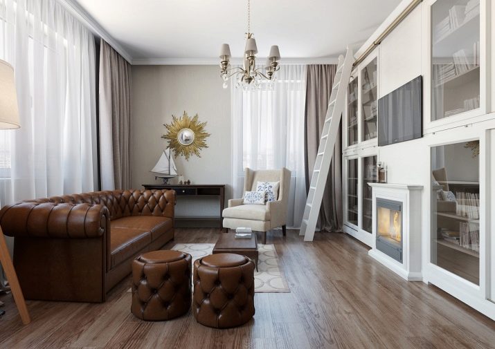 - Noble obývací pokoj ve stylu moderních klasiků - to je rozhodnutí, na které domácnosti nejčastěji konvergují. Všimněte si, že nábytek není vybrán z jedné sady, o které designéři často mluví dnes.