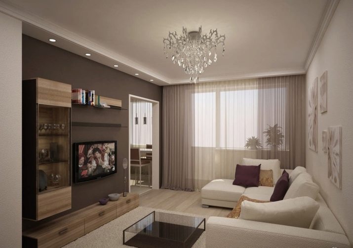 Výhoda je samozřejmě na straně jasných barev. Pro malou místnost je to optimální řešení, a pokud je místnost jako jediná v bytě, pak je ztmavení nebo barvení velmi riskantní. Obývací pokoj můžete vyzdobit v monochromatických barvách, bez barevných přechodů a jasných řešení. Obvykle dávají přednost bílé barvě, což je nejlepší zázemí pro téměř jakékoli prostředí.