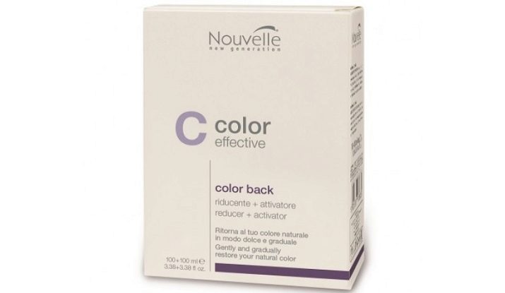 - Barva Zpět Wash od italské společnosti Nouvelle se také skládá ze dvou lahví a je schopen provádět úplné nebo částečné proplachování pigmentem. A i když úplné použití henny bude vyžadovat opakované použití, účinek na strukturu a stav vlasů bude velmi měkký a jemný.