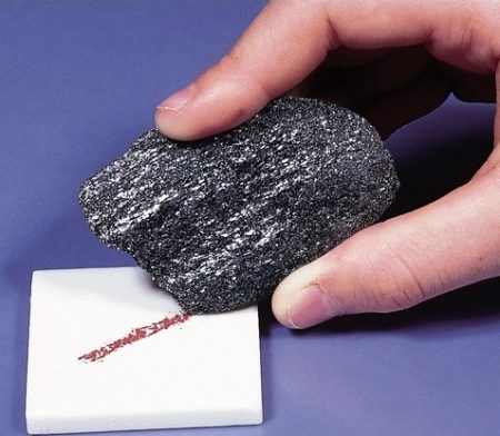 Přirozený vzhled kamene můžete zkontrolovat pomocí hrubého a světlého povrchu. Minerál bude muset být lehce držen nad ním. Když je hematit skutečný, zanechává za sebou červený pruh. Pokud taková stopa nezůstane, je kupující dobře provedený.