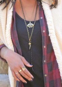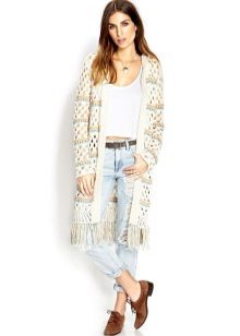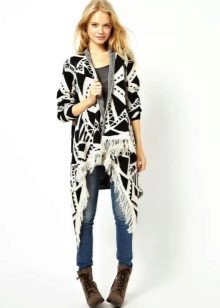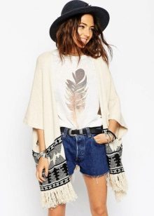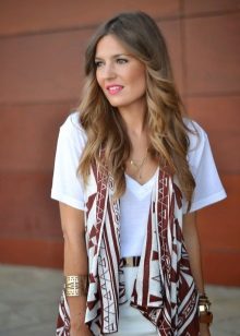 V této sezóně zasáhly prostorné, podlouhlé pončo podobné vesty. Obzvláště stylové modely s etnickými tisky, které dokonale zapadají do současného stylu boho. Je pravda, že jsou vhodné pouze pro štíhlé dívky, protože vizuálně zvyšují siluetu.