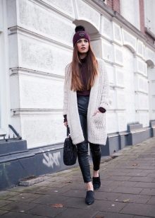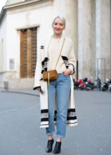 Věčná klasika, relevantní kdykoli a v jakékoli situaci.Vyberte si protáhlé modely s velkými úplety, které nikdy nevymizí z módy. Je lepší dát přednost skutečnosti, že bez tlačítek. V případě potřeby mohou být zachyceny popruhem. Límec v nich samozřejmě chybí, ale občas existuje kožešinový límec, který dává obrazu luxusu a elegance..