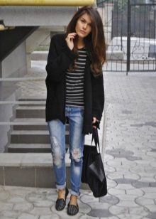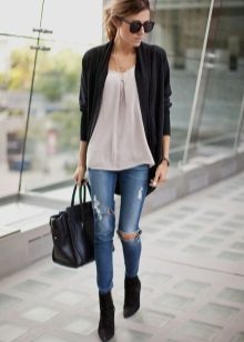Taška a boty lze vybrat v souladu se zvoleným stylem. Moderní móda umožňuje kombinovat vesty s téměř jakoukoli botou, jak s patou, tak bez ní. Nejlepší volbou jsou boty nebo kotníkové boty s malými podpatky, které jsou vhodné pro každou příležitost..